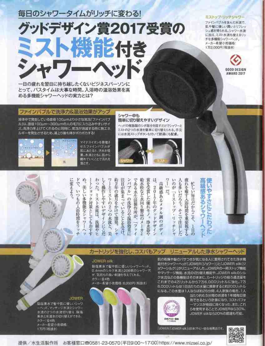 「ミストップ・リッチシャワー」と「除塩素シャワーJOWERシリーズ」が日経トレンディ2018.3月号に掲載されました!