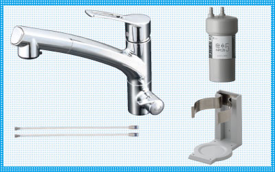 浄水器兼用シングルレバー混合栓217型セット内容:シングルレバー混合栓217型、配管用ホースセット、アンダーシンク用交換フィルター